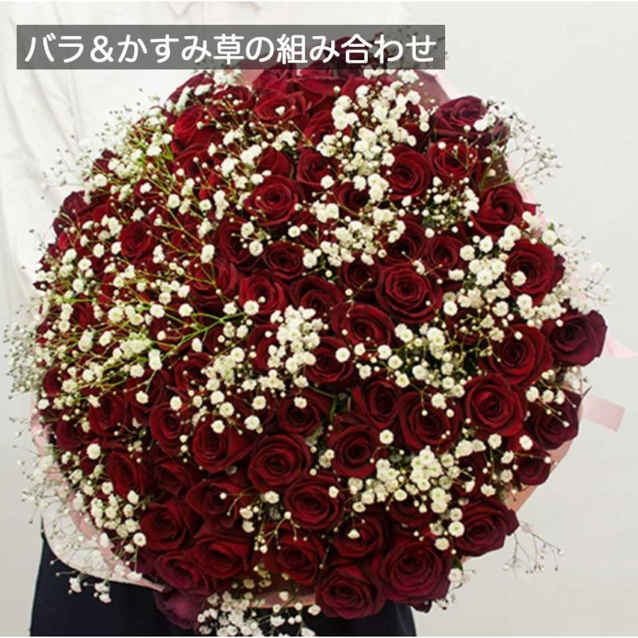 通年 レッド 赤バラとカスミソウの花束 インターネット花キューピット フラワーギフト 手渡し